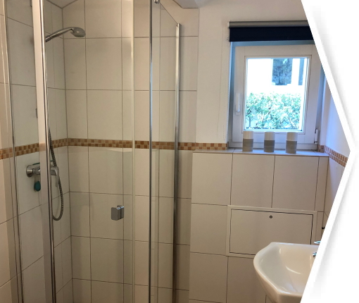 Die mollige Fußbodenheizung ist die ideale Ergänzung in unserem Bad. Dusche und Waschbecken machen den Raum perfekt für einen Aufenthalt bei uns. Der Blick aus dem Fenster geht übrigens direkt über die Havel …